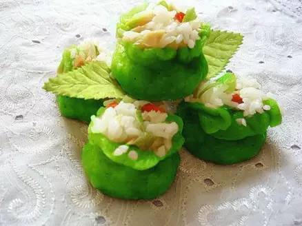 1)把菠菜打成汁;打好的汁加面粉和成面团;和好面团搓成条切成剂子