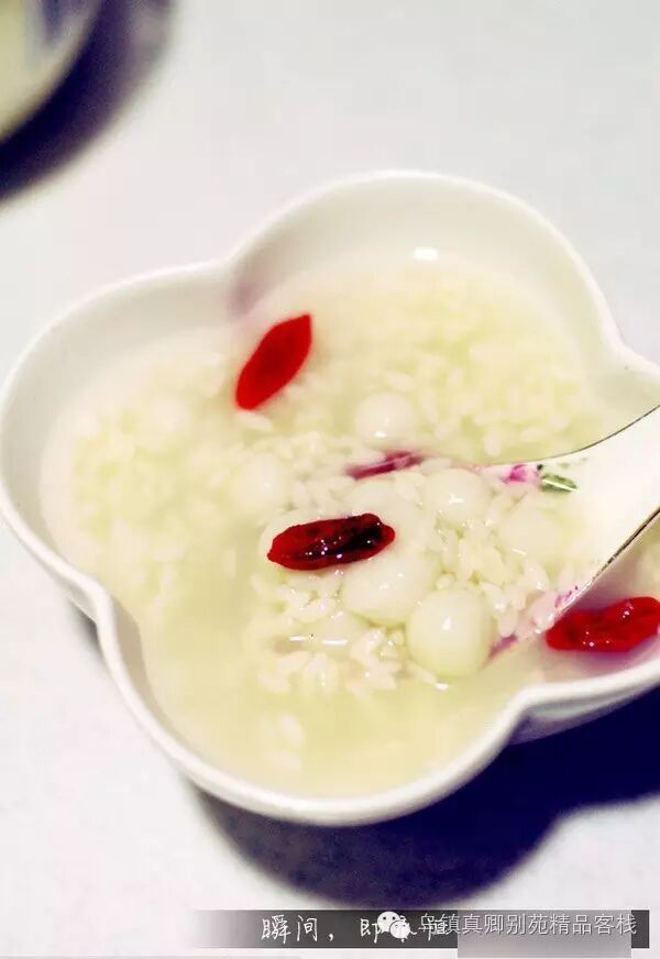 采用传统方法酿制的乌镇三白酒味甘香烈,深得嗜酒之人的喜爱。而其糟坊产出的酒酿更是不可多得的佳肴,乌镇人将糯米粉的小圆子与酒酿同煮,再加上桂花、枸杞,制成了一道美味——酒酿圆子。酒酿味浓甜润,圆子较糯,吃起来还有桂花清香。