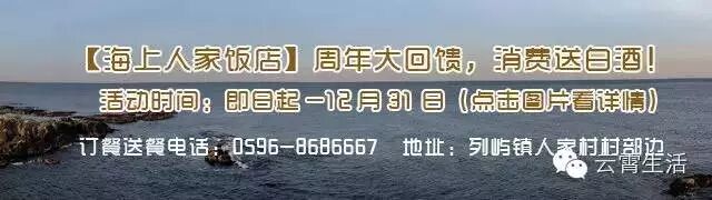 云霄熟食:即婚俗主脚与盘脚。主脚指的是生斩鸡;盘脚有白披、熏肠、肉卷、肉嗲四种。云霄民间有句谚语“母舅鸡头不紧动,客人筷子不敢动”,即指新郎的母舅要先将鸡头转动,婚宴正式开始。婚俗桌共坐八位,分别为母舅、氏大、东一、西一、东二、西二、端菜、斟酒,按顺序坐定。婚宴过程,饮酒最少须满三杯,表示“三巡”。至婚宴结束,主脚与盘脚的盘中必须有菜,不能全部吃完。在日常生活里,婚俗主脚与盘脚是家庭主妇的拿手好菜。现在,被广泛做为“熟食店”主菜,成为夜宵主要菜色,颇具盛名。