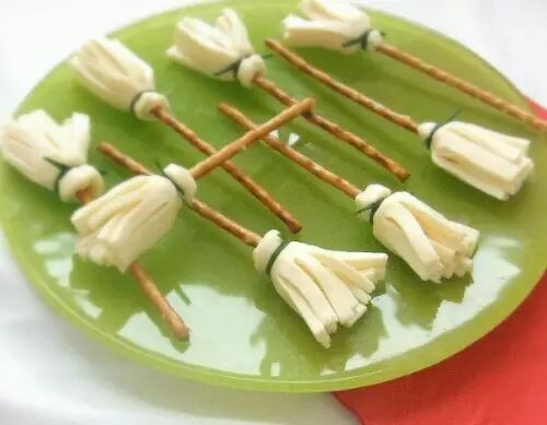 1. 将黑橄榄一颗切半做蜘蛛身子,剩余的切条状做脚,摆好即可