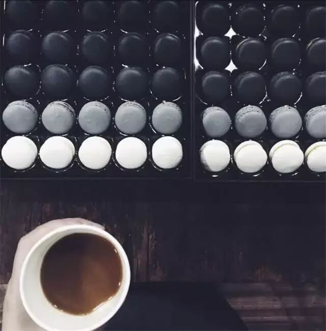 用黑白元素赋予传统食物更多现代、简约的视觉风格。芝麻、可可、巧克力、竹炭等等黑色食材也都可以尽情运用了。不仅可以把马卡龙给“抹黑”,也还可以多姿多彩的尽情DIY内馅。例如抹茶、香草、花生的融入等等都会产生出不同的碰撞。