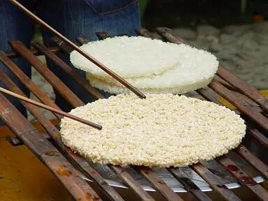 象耳朵粑粑傣语为“毫吾展”,是耿马傣语泼水节期间又一重要的风味食品。做法是将糯米用水浸泡一夜,磨成面浆沥去水分再搓揉成团,在锅中煮熟,捞出放到木臼中加上红糖舂捣,再取出放簸箕上裹上炒熟的豌豆面,擀成圆形薄饼,晒干后用油炸。象耳朵酥脆香甜、入口即化,是节日期间傣家必备的美食。