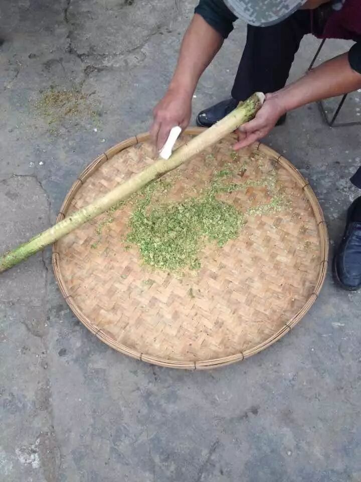 酸牛脚筋傣语为“呐宋窝”,其做法是选牛脚或牛拱嘴为料,以火烧透后刮洗干净,放入锅中煮一阵取出凉却,再切成条,拌以食盐、花椒、辣椒面和熟糯米饭塞入陶罐盖紧,腌数日后即酸。拌上芫荽或炒熟就能吃,色香诱人,酸辣爽口。