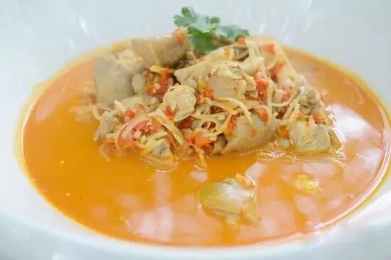 酸笋煮鸡是傣族一道较为独特的菜肴。其做法是将酸笋用水洗净,放入锅里煮透,再将鸡肉放入锅里同煮,待鸡肉煮熟后起锅,然后将辣椒、姜、葱等佐料放入油锅里炒热,把鸡汁倒入锅里回煮后即可食用。其味酸辣爽口,开胃下饭。