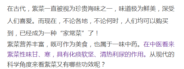 日本人的长寿和他们饮食不无关系,紫菜就是日本人的长寿菜,其可以抗氧化延缓刷老。同时,紫菜还能保护肝脏细胞,降低肝脏毒性。