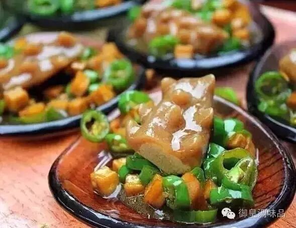 4、另锅放橄榄油烧热,先下素辽参块、杏鲍菇丁和青线椒粒稍炒,待掺入熬好的咖喱芥末味汁后,调入素御皇特鲜鸡精烧入味,待收干锅里的汤汁便装盘,即成。