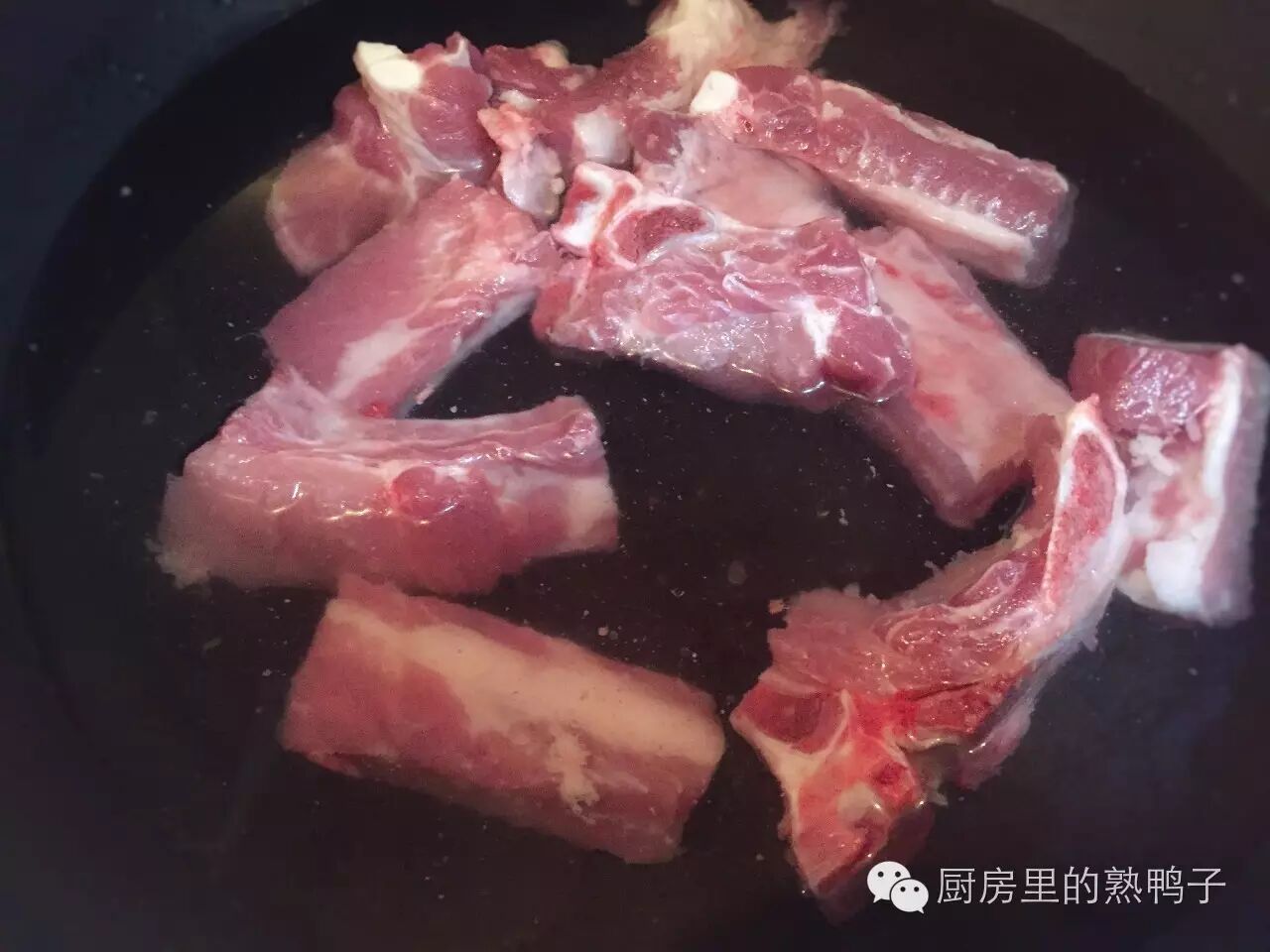 1:排骨冷水入锅煮开,倒出洗净沥水(据说用冷水能吧脏东西煮出来)