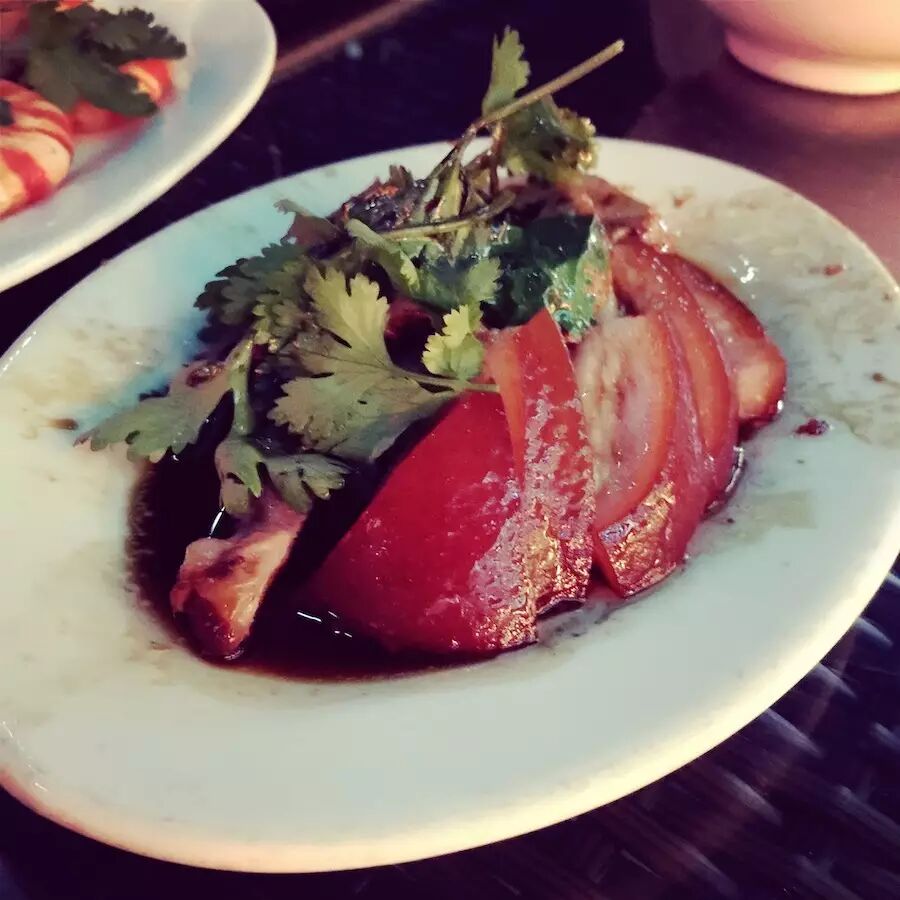 可以明确吃到虾的味道,间或会出现荸荠一类的爽脆的口感。后面那个蘸料也非常特别,甜甜的,有桂皮味,回来查了一下好像是金桔油?汕头的同学可以指正我...