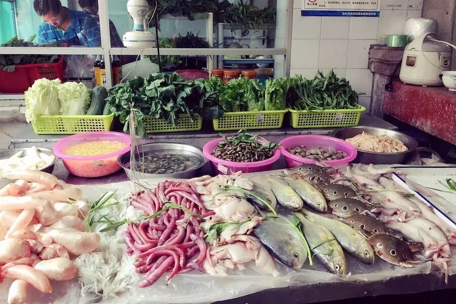 落座后,记住自己的桌号,就可以去点菜了!所有几百种食材都在这一条,有海鲜、卤味、鱼饭、甜点等等等等...