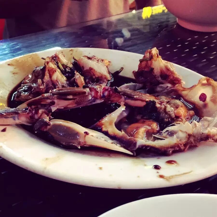 腌虾、腌血蛤都已经卖完了,就来了一份腌蟹,最适合下粥的一道。不过因为我不太适合吃蟹和生的,就只眼巴巴地舔了一口「黄」,鲜死了...