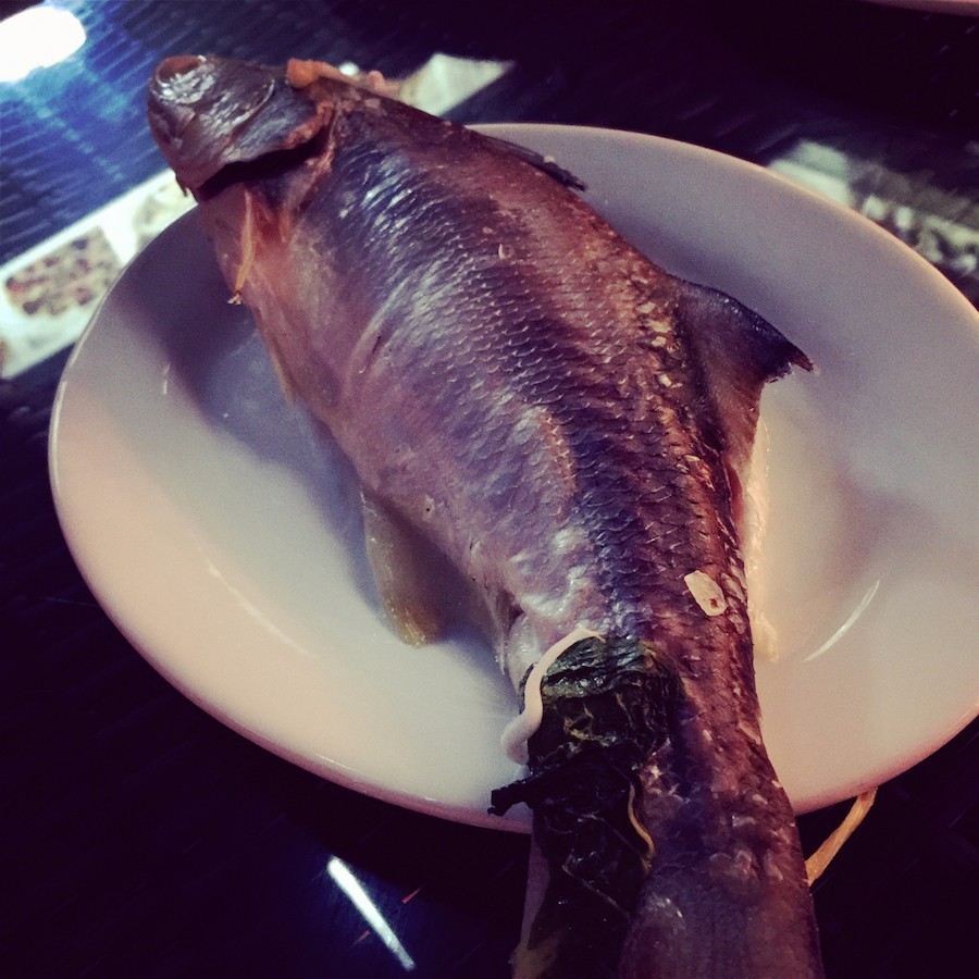 柠檬乌鱼饭,乌鱼还挺大一条的,所以这里是拆了肉上桌的。大鱼肉质上没有第一天在富苑吃的那种小鱼细嫩,是比较紧致有弹性的口感,清甜且鲜,也可以蘸豆酱吃。