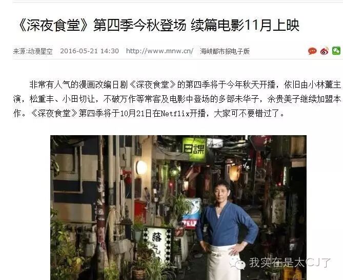首先是大家很熟悉的《深夜食堂》,已经播出过三季