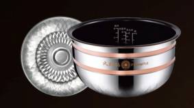 在同样的时间内加热后,发现热盘式加热的电饭煲的米饭已经糊香四溢通常,普通电饭煲只会将单个电磁线圈安装在电饭煲的底部,于是有时会有一锅米饭底部已经煮糊,而上部分却是夹生的情况出现,就是因为仅有底部加热,侧面不加热,最终温度不均造成的。