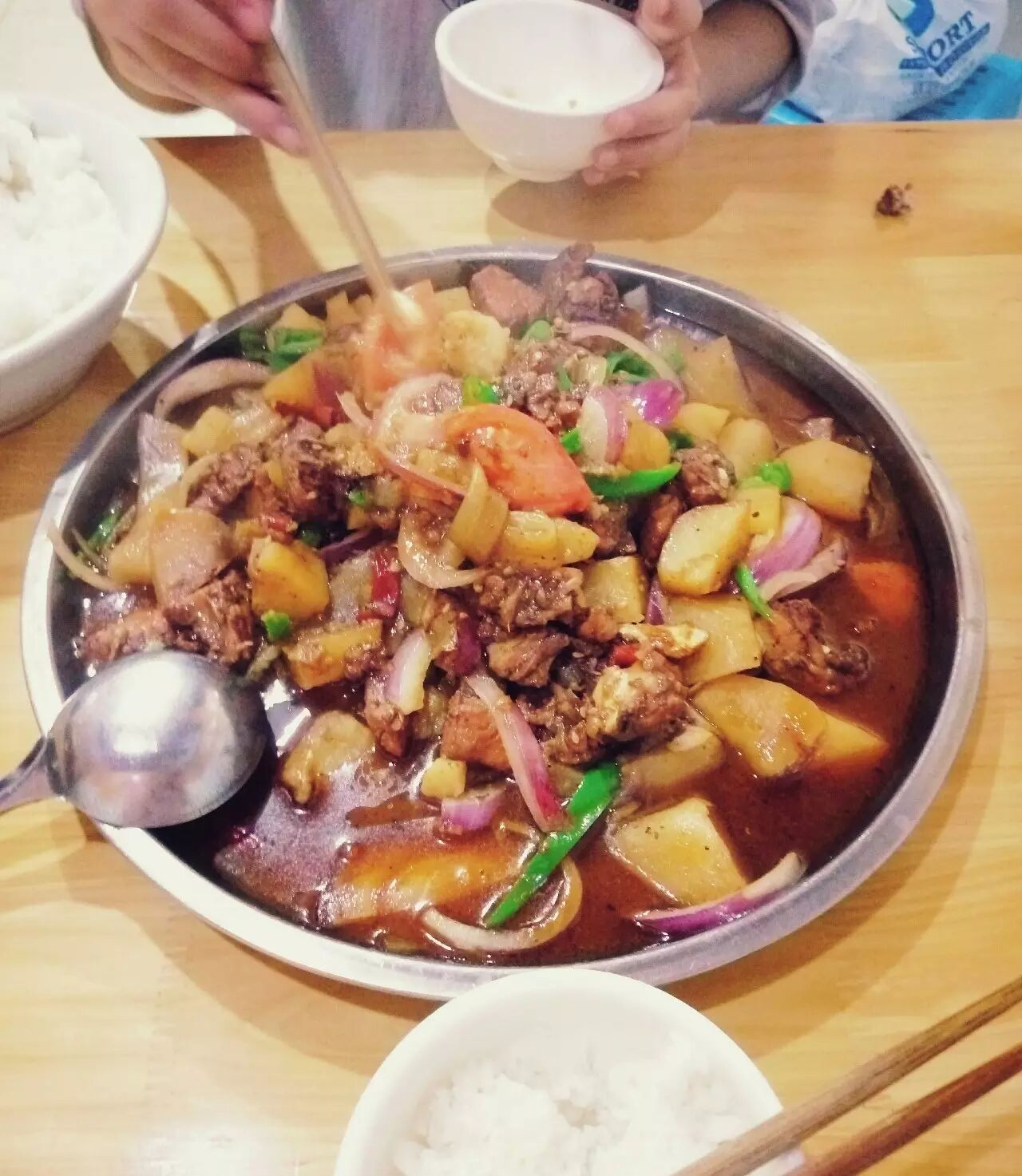 推荐理由:鸡块土豆和洋葱,色彩鲜艳,爽滑麻辣。我拒绝更好更圆的月亮,拒绝未知的疯狂,拒绝声色的张扬,没拒绝你——大盘鸡。