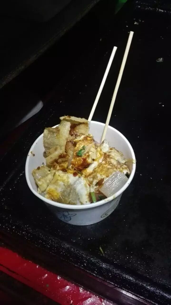 这种小吃一般只在夜晚出售,工院男和他的女友从四运到后山走了将近一公里的路程。只需再等上三分钟,他们便可以享用这份美食。