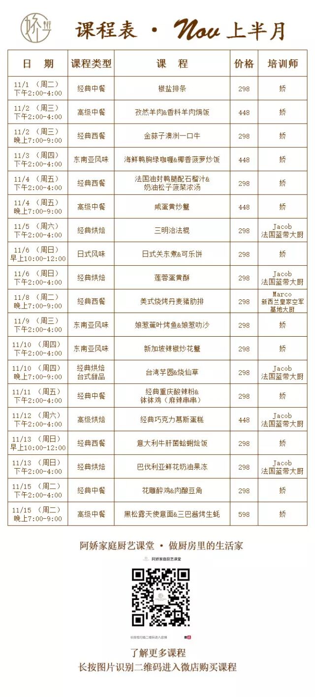 1、本月活动: 一月开始第一次到店的学员可以获赠北欧风硅胶厨具一把四款任选 先到先得 送完即止哟!(仅限原价拍下课程的学员)