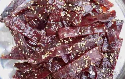 (1)选用黄牛臀部肉(俗称打棒肉)6千克,洗净血污后用刀片成长12厘米、宽6厘米、厚2厘米左右的薄片,放在盆内,加白酒200克,精盐80克,酱油100克,白糖100克,味精50克,姜汁,蒜白、葱白各50克,小苏打20克,硝水10克,混合拌匀后腌渍1--2小时。