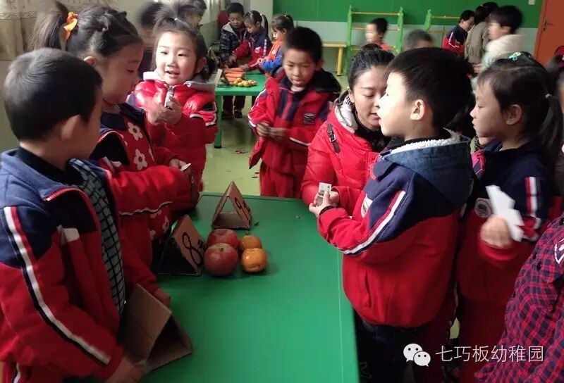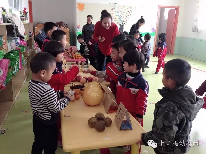 今天我们扮演了店主和顾客的角色,把秋季丰收的水果带到了幼儿园开始买卖游戏。