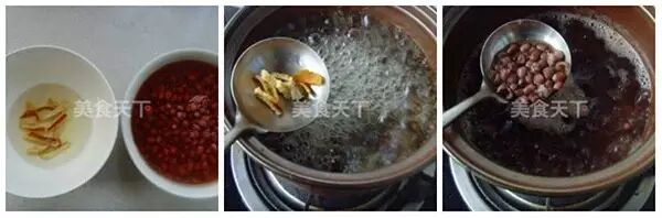 1、红豆洗净浸过夜;陈皮用温水泡软,用小刀刮去白瓤。