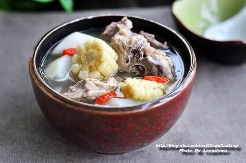 猪脊骨适量、山药适量、嫩玉米适量、桂皮适量、生姜适量、香叶适量、枸杞适量、精盐适量