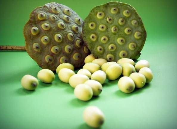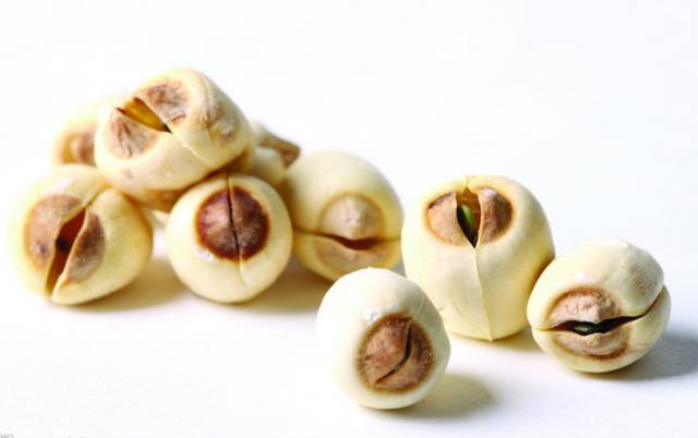 莲子中央绿色的芯,称莲子芯,含有莲心碱、异莲心碱等多种生物碱,味道极苦,有清热泻火之功能,还有显著的强心作用,能扩张外周血管,降低血压。可以治疗口舌生疮,并有助于睡眠。用作补益药,补脾止泻,益肾涩精,养心安神。可治疗脾虚久泻、泻久痢、肾虚遗精、滑泄、小便不禁、妇人崩漏带下、心神不宁、惊悸、不眠。