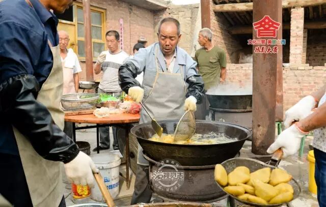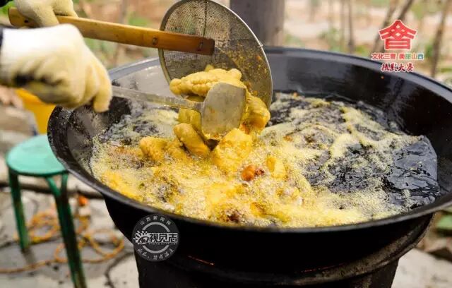 黍子收下,先要在阳婆(太阳底下)晒干,冬天阳婆不好,也可以在炕上炕干,去掉水分。这样在去皮时就容易得多。去皮的黍子色泽金黄,叫黄米,黍子皮呈灰色,叫糠,与糟糠的黄脸婆的面皮一个颜色。黄米用水淘净并晾到半干后(方言称“粉”),色泽更加鲜亮。蒙上红布眼罩的小毛驴,拉着吱吱呀呀的碾子,围着磨道,一圈一圈复一圈,金黄的米在驴脖悠扬的铃铛声里就变成了糕面。流行于晋北的二人台小戏《压糕面》就是以此为背景,塑造了后生二小与闺女杏花在磨房压糕面合谋算计那个干涉他们恋爱自由的老太婆的形象,插科打诨,边唱边舞,煞是热闹。近来有好事者把这出戏改名为《喜上喜》,就失掉了原来的浓厚生活气息。咱五台真的是创造美味的天堂!我的油糕情怀!