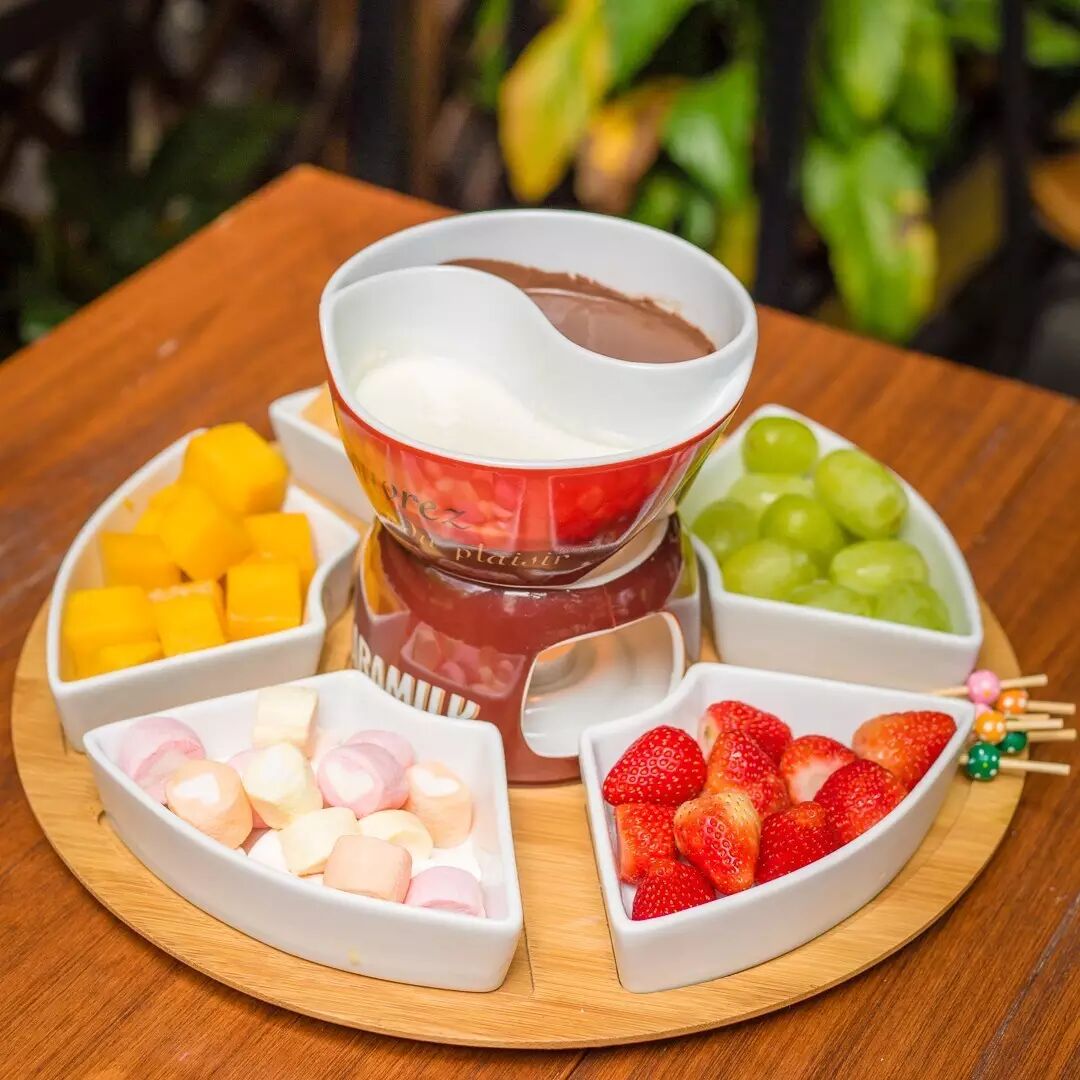天气渐凉,各种火锅也开始流行起来了!!然而你绝对没法想到,在这里连水果都可以打起火锅来!!锅底还是比利时进口巧克力,甜而不腻!!