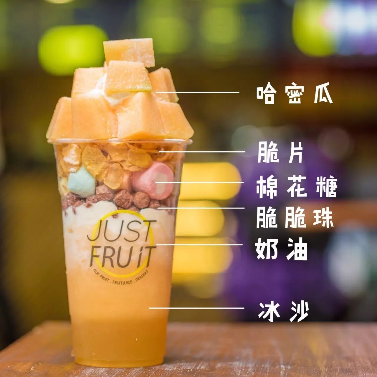 6大层厚料迷倒一堆吃货!冰沙、棉花糖、奶油、脆脆的巧克力球和玉米片,当然少不了霸气的果肉铺面。口感如此丰富的水果杯,让人每天都想把它捧在手心上呢~