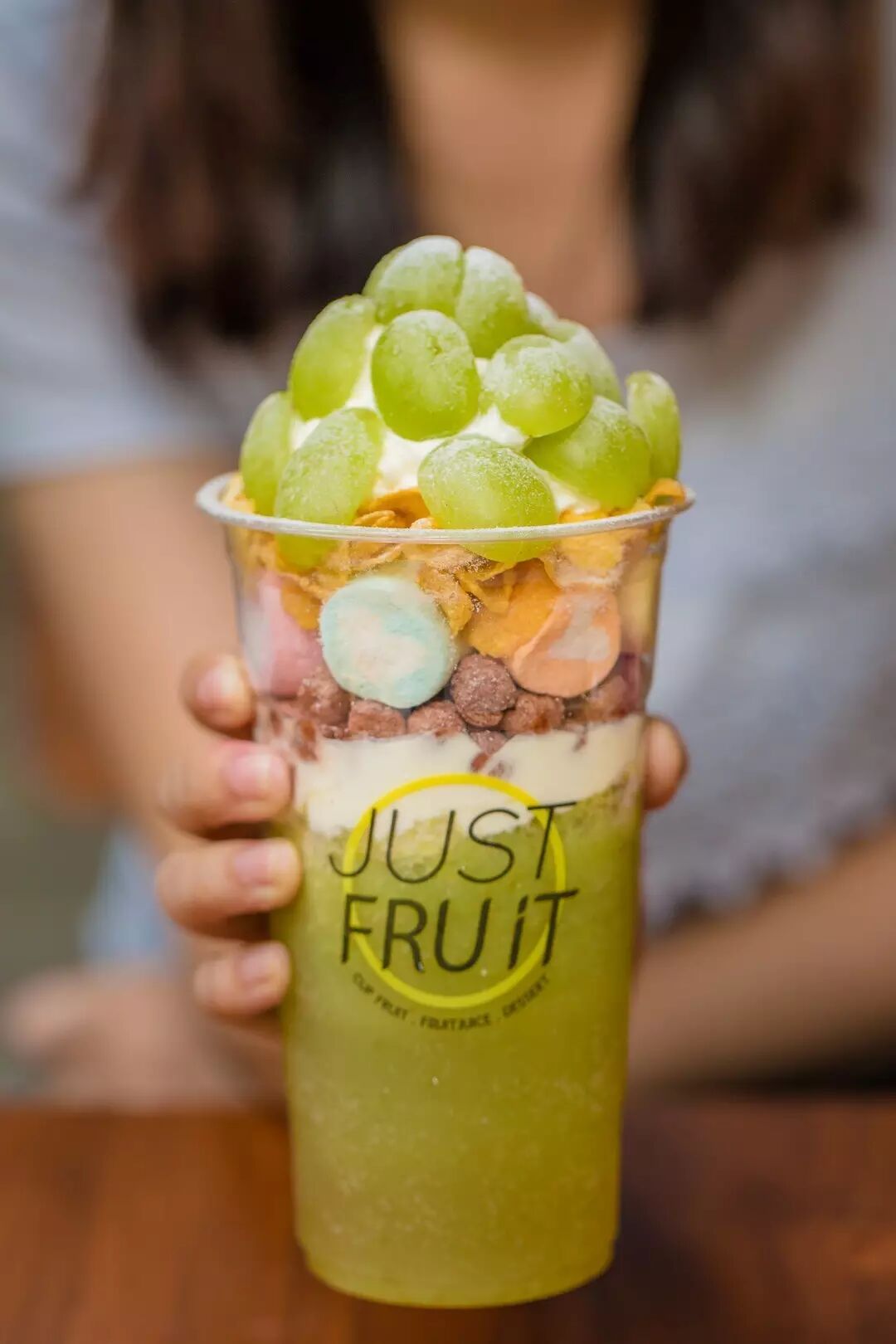 绿韵青提杯让人看到就不淡定了!颗颗青提都是大写的水灵灵,萌到无法对焦!混着脆脆的玉米片和巧克力球,再用力吸上一口沁透心扉的冰沙,那种清凉舒爽的满足感简直要上天!