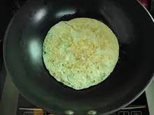 刚下锅时铺平以后不要动,底部煎熟以后,只要晃动锅,饼会自己离开锅底。