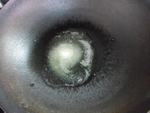 7:平底锅开小火,稍稍预热,抹一层薄油。
