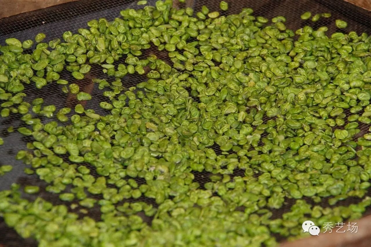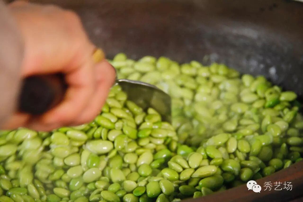 烘豆茶历史久远,清朝诗人韩应潮在《栖溪风味十二咏》中就这样描述“活火烘干青玉脆,盈瓶赠到绿珠投”。塘西历年都有“烘青豆”的习俗,制作过程并不复杂,将剥好的毛豆加盐煮熟然后炭火上烘干即可。