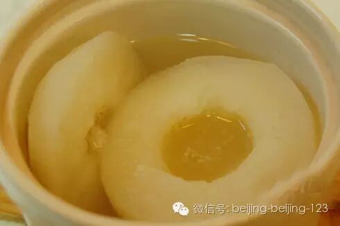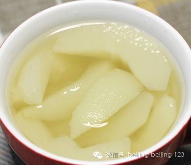做法:将梨去核切块,与川贝、冰糖一起,加适量水放入碗中,隔水炖煮15分钟左右起锅,喝汤吃梨。