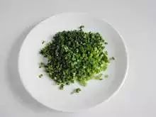 10:把豆腐和韭菜混合,调入少许盐、鸡精,淋入1汤勺熬熟但已冷却的香葱油,搅拌均匀。