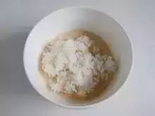 3:酵母水缓缓的加入到面粉里,边加边用筷子搅拌成絮状。