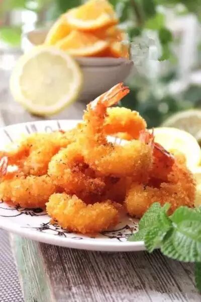 虾、黑胡椒粉、盐、料酒、鸡蛋、白醋、玉米淀粉、面包糠。