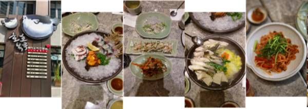 步入其中,两侧摊点的鱼缸与盆子里各种海鲜琳琅满目,摊点之间摆放着桌椅,市民们在摊点选好海鲜,摊主们会直接捞起来,现场简单料理直接上桌,吃的就是一个“鲜”字。在这里,根据海鲜的种类,以2人份为基准,消费2~6万韩元左右便可吃到新鲜的生鱼片。