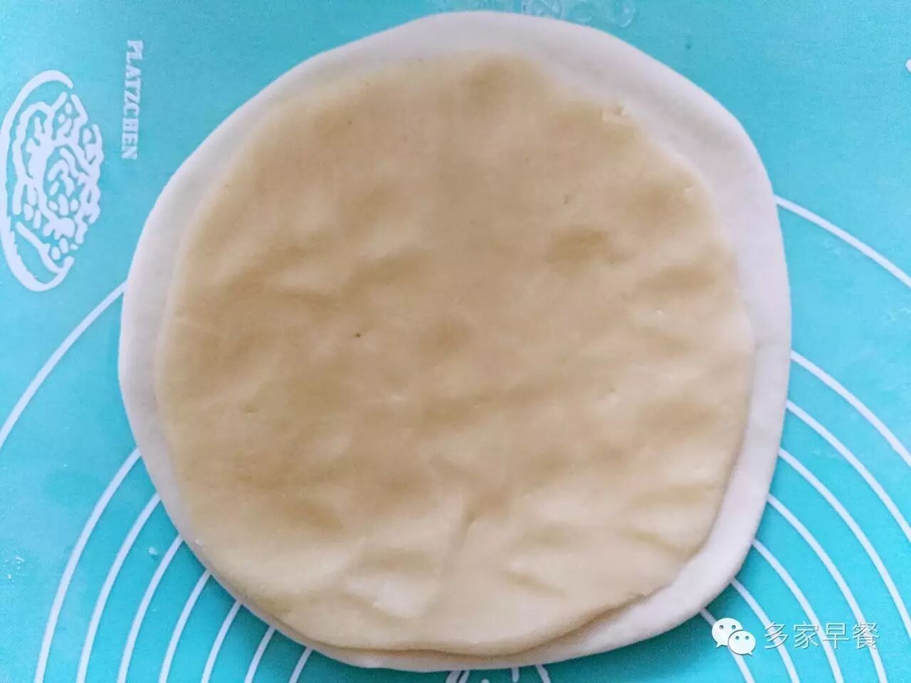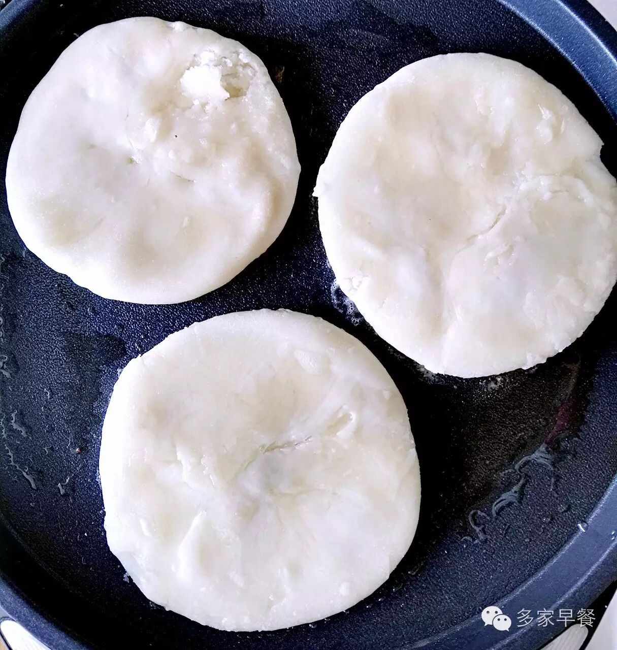 6、电饼铛预热,刷一层薄油,用刮板将擀好的饼坯小心地移到饼铛上,烙至两面金黄即可。