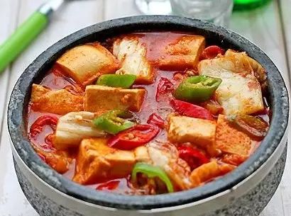 材料:韩国辣酱2匙,白菜丝,金针菇适量,嫩豆腐1/3块,盐