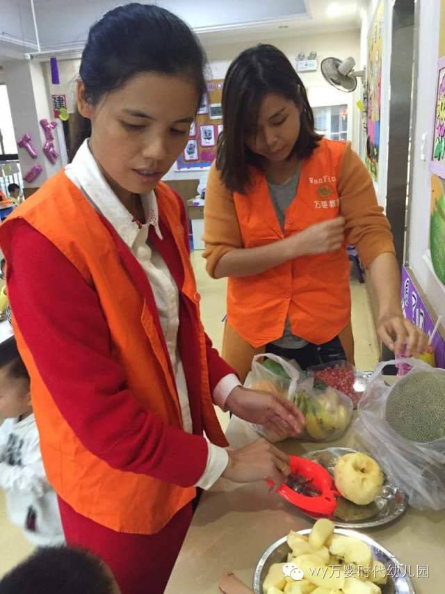 14班的果果妈妈和辰辰妈妈直接进入课堂和孩子们榨上果汁了,每个小朋友都体验了一把水果变果汁的奇妙旅程。