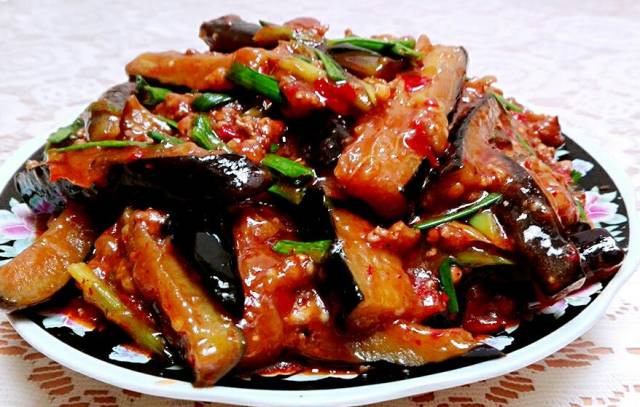 1.准备好所需茄子、猪肉和豆豉辣酱
