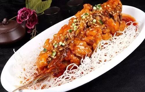 鱼形美观大方,色泽棕红,外酥内嫩,有浓郁的糖醋香味。