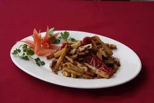 制作此菜,掌握好火候是成败的关键,牛肉丝一定要煸至水分收干,切不可水分太重,否则牛肉丝会软绵而不酥香;芹菜下锅炒断生要迅速起锅,否则变色不脆。