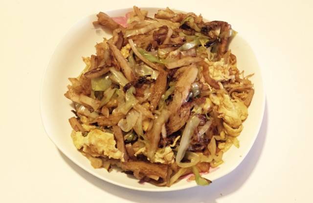 食材:包菜、香菇、洋葱,胡萝卜,豆苗,葱姜蒜,白糖,耗油,生抽,老抽,面条,盐,鸡蛋