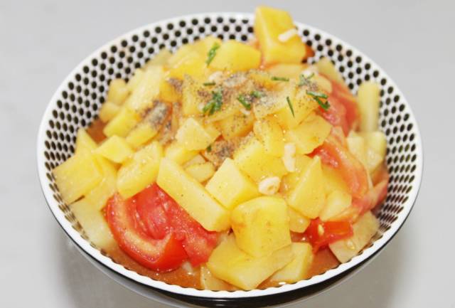 食材:土豆,番茄,葱姜蒜,油,生抽,耗油,白糖,盐