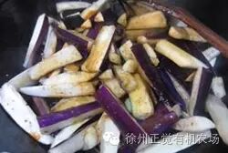 茄子八成熟的时候加入酱油,糖,料酒,大火翻炒