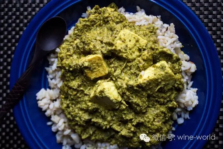 在印度菜系中,还有另外一种蔬菜草本酱汁,虽然不常见,但却十分有趣。这种酱汁是采用绿叶蔬菜与奶油、洋葱和香料熬制而成,有时也会用香菜和酸辣酱进行调配。带有明显的草本风味的起泡酒和白葡萄酒就能很好地凸显这些菜肴中的蔬菜草本味。