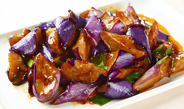 茄子2条, 肉丝少许,姜, 蒜, 葱, 辣豆瓣酱, 醋, 糖.