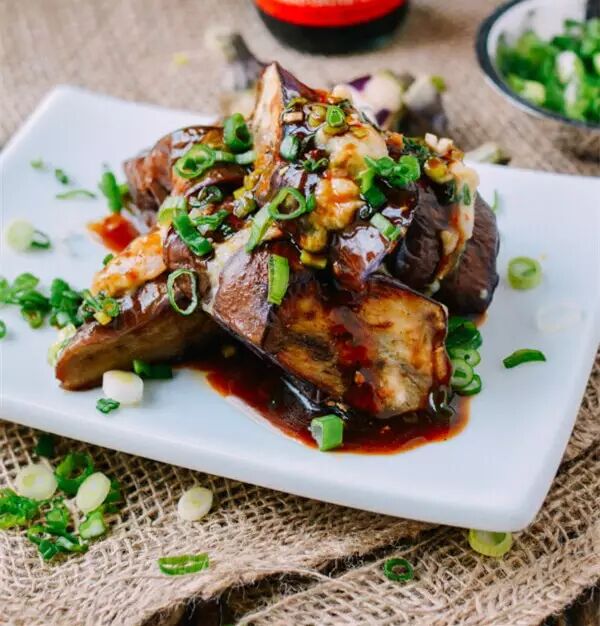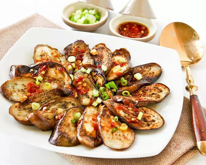 材 料 :茄子、葱、油、大蒜辣椒酱