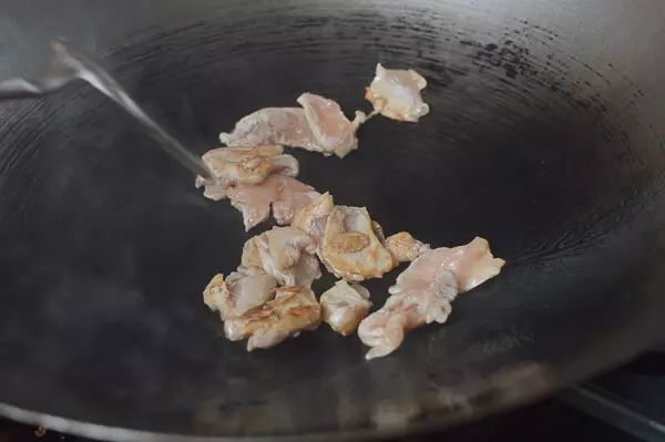4.加入油、葱、蒜爆炒,随后加入鸡肉和茄子,直至炒熟。